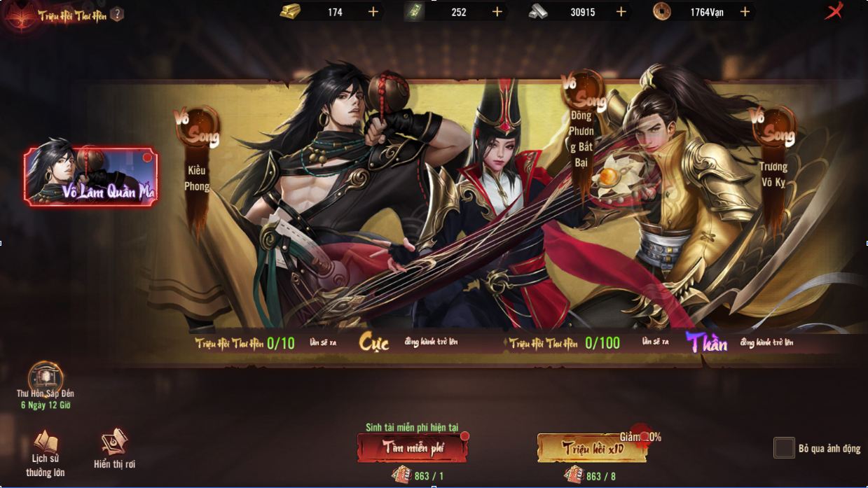 Cập nhật Thư Hồn - Thần Phẩm: Trương Vô Kỵ, Kiều Phong, Đông Phương Bất Bại vào vòng quay Thăm Hỏi