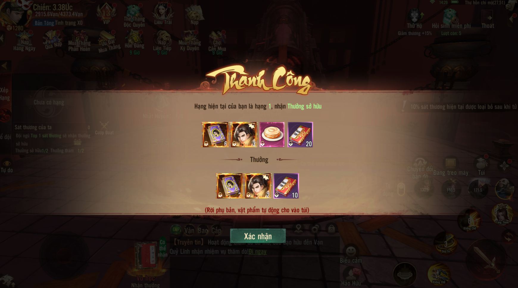 - Có thể tham gia tổ đội để khiêu chiến thư hồn: Đội gây sát thương cao nhất cho Thư Hồn, tất cả thành viên sẽ nhận được thưởng sở hữu tương ứng.