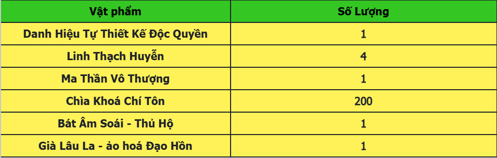 * Danh Hiệu Tự Thiết Kế Độc Quyền là danh hiệu NPH sẽ thiết kế dựa theo ý tưởng của Thợ Săn.