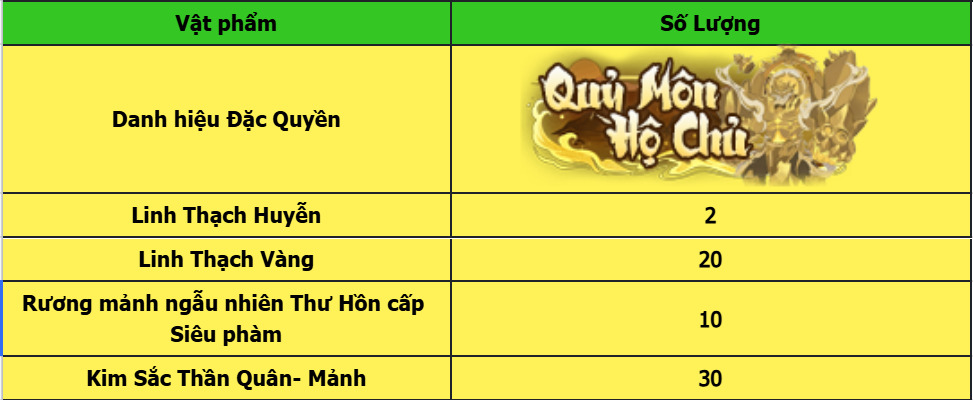 - Khi Thợ Săn đã đạt đủ điều kiện nạp mốc sẽ nhận được phần quà tương ứng với mốc nạp đó.