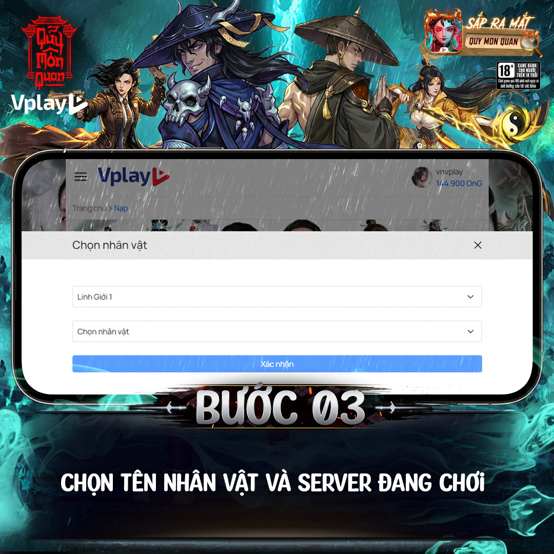 🔹 Bước 3: Chọn tên nhân vật và server đang chơi