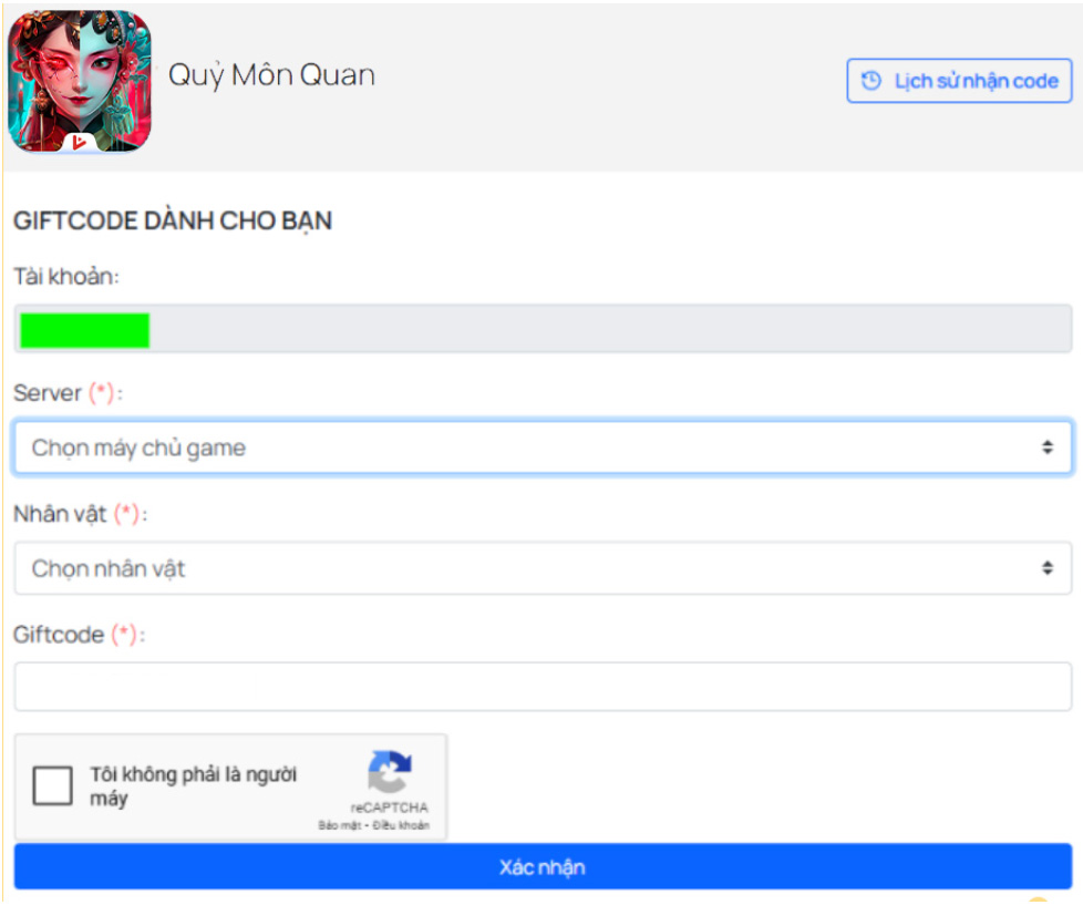 🔹 Bước 3: Chọn “Nhận Code” game Quỷ Môn Quan