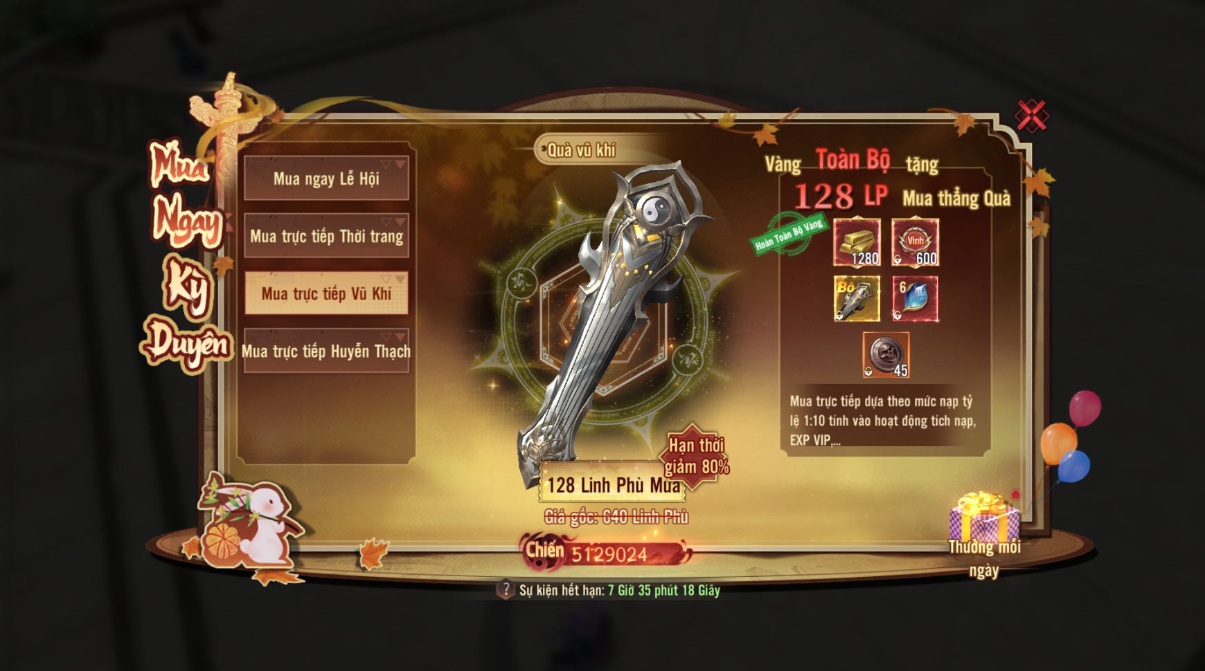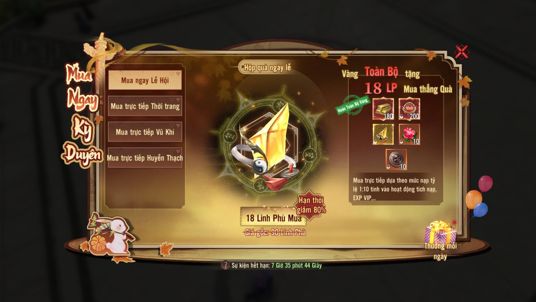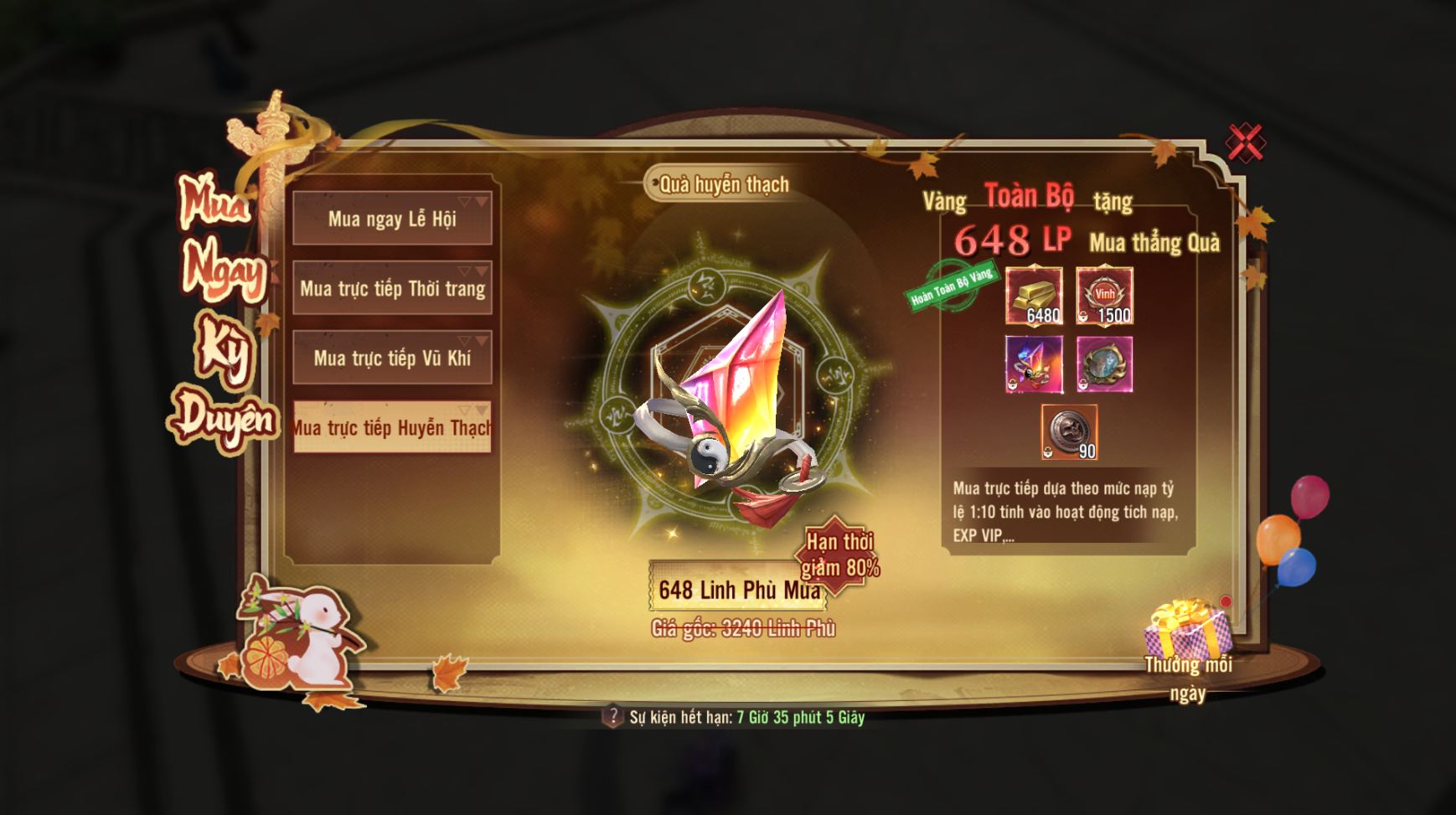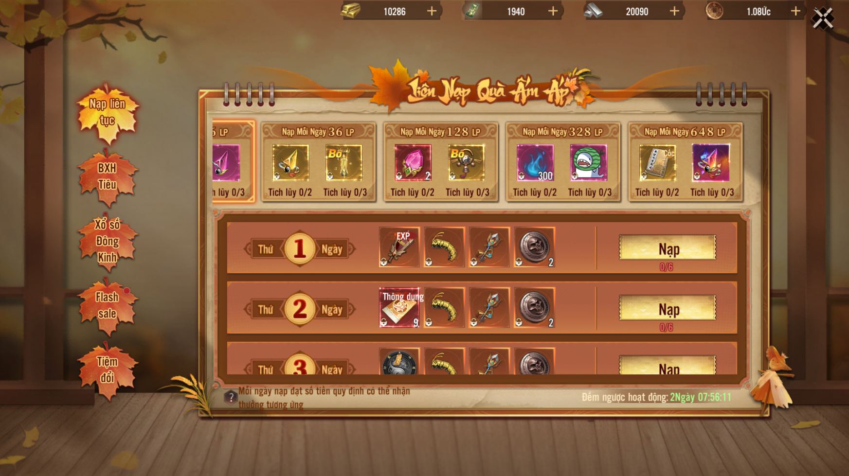 Nạp đúng mốc 6LP, 36LP, 128LP, 328LP, 648LP (tích lũy 2 & 3 ngày) nhận các phần quà giá trị: