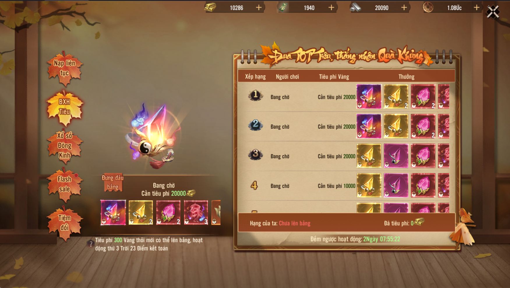 Tiêu số lượng vàng đạt điều kiện có thể vào top, tổng kết lúc 23h, tiêu vàng nhận từ đấu giá không tính vào bảng xếp hạng