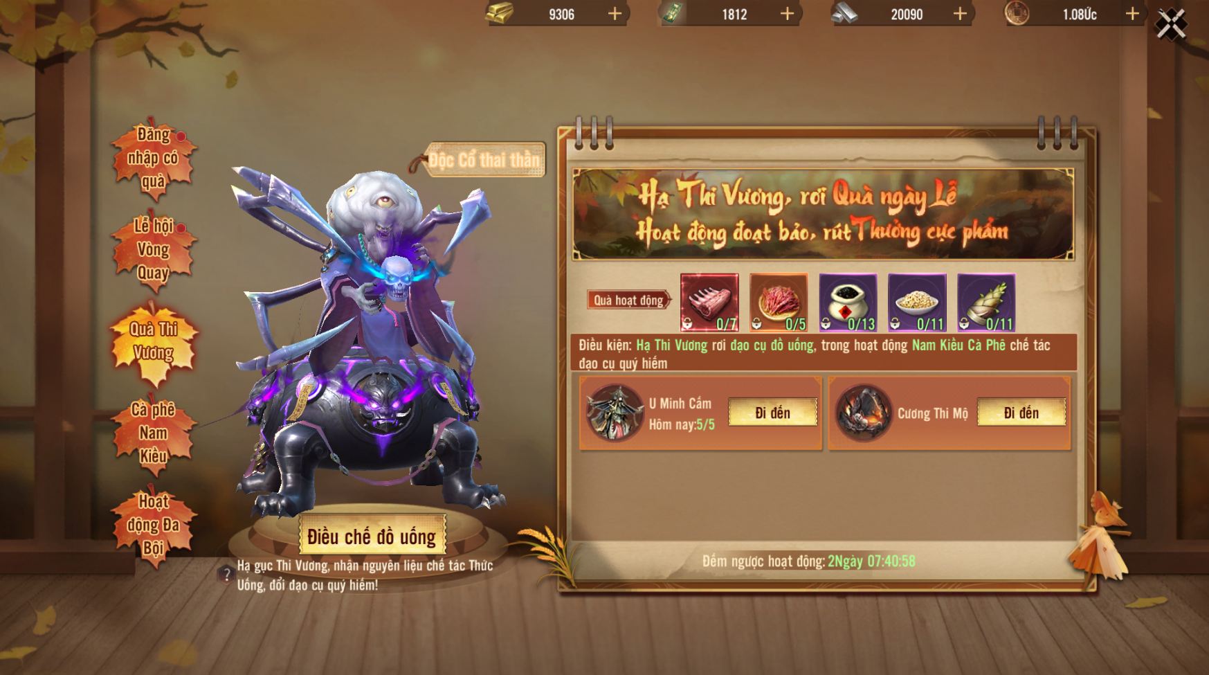 Đánh boss U Minh Cấm Địa và Cương Thi Mộ Địa nhận quà vật phẩm để điều chế món trong hoạt động Cà Phê Nam Kiều