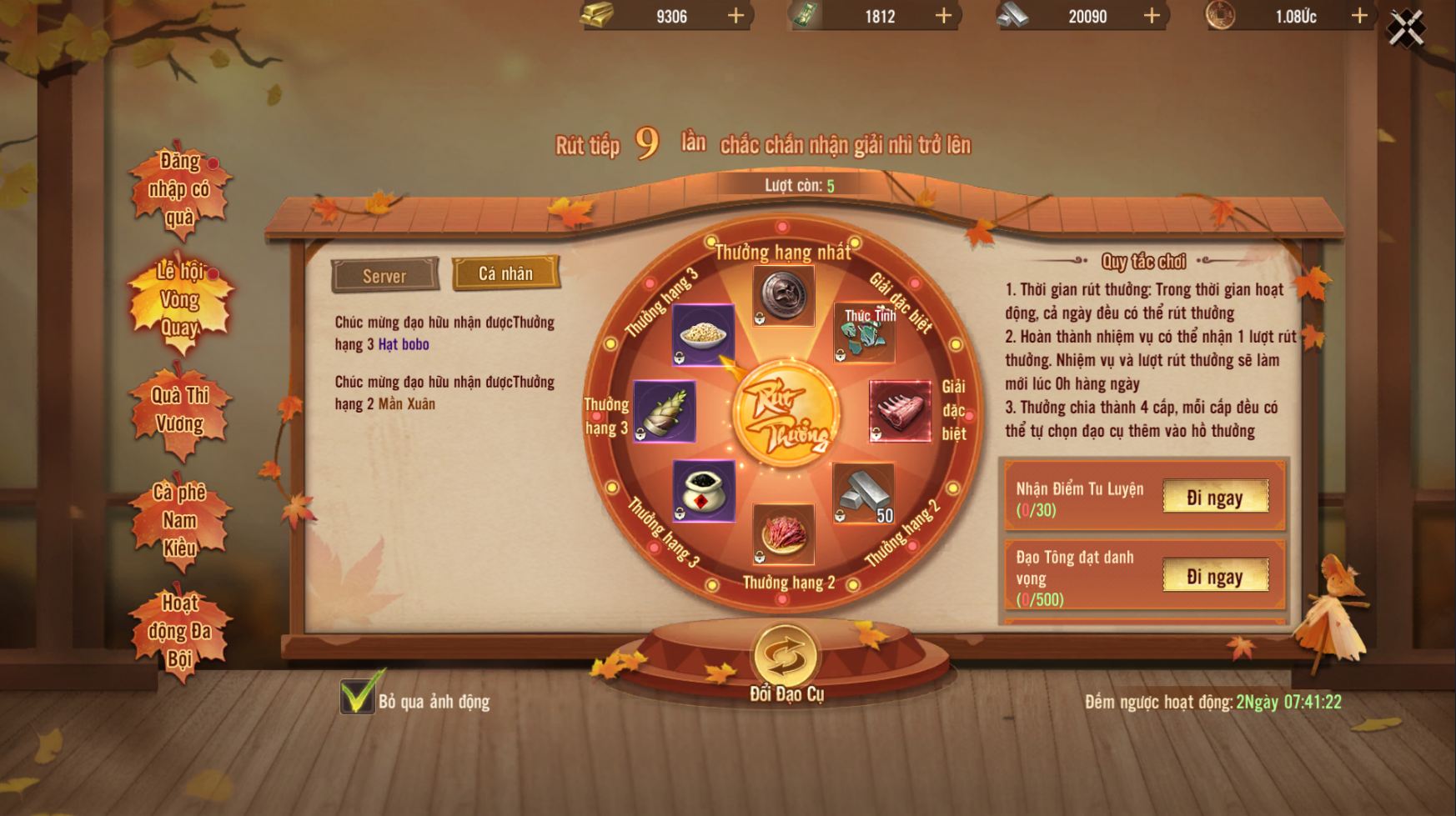 Hoàn thành nhiệm vụ có thể nhận 1 lượt rút thưởng. Nhiệm vụ và lượt rút thưởng sẽ làm mới lúc 0h hàng ngày