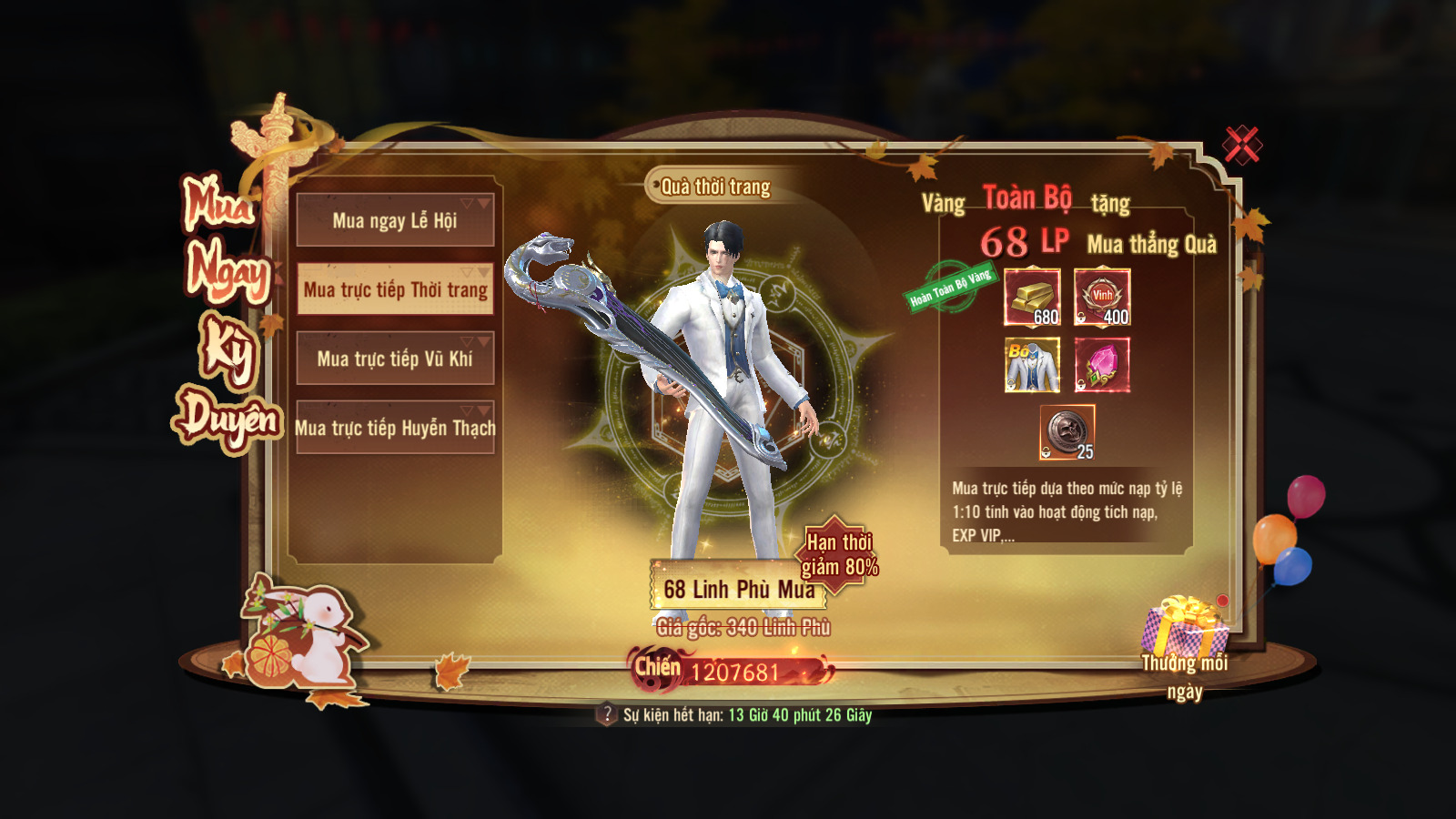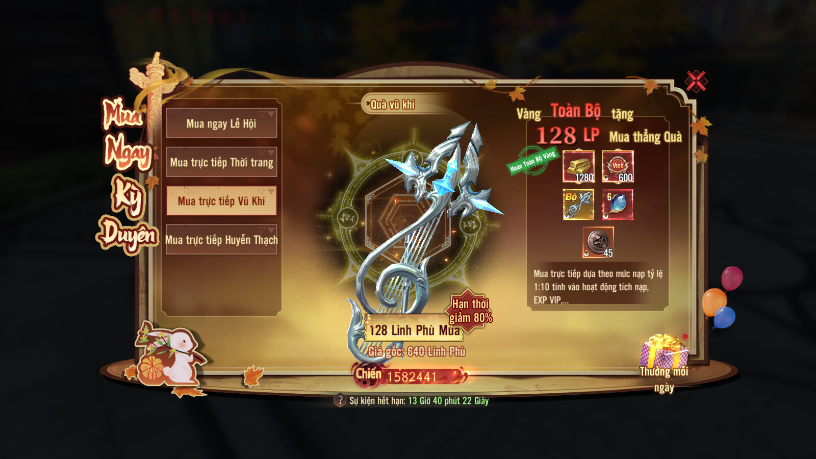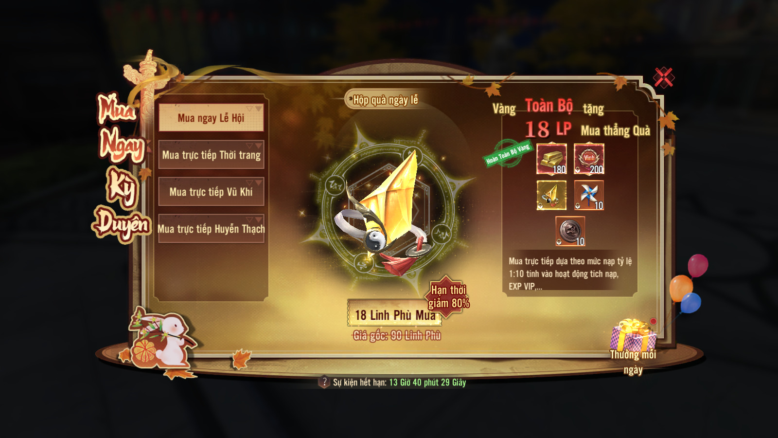 - Pháo hoa rực rỡ (300 vàng) (bắn 1 lần nhận 10 item)