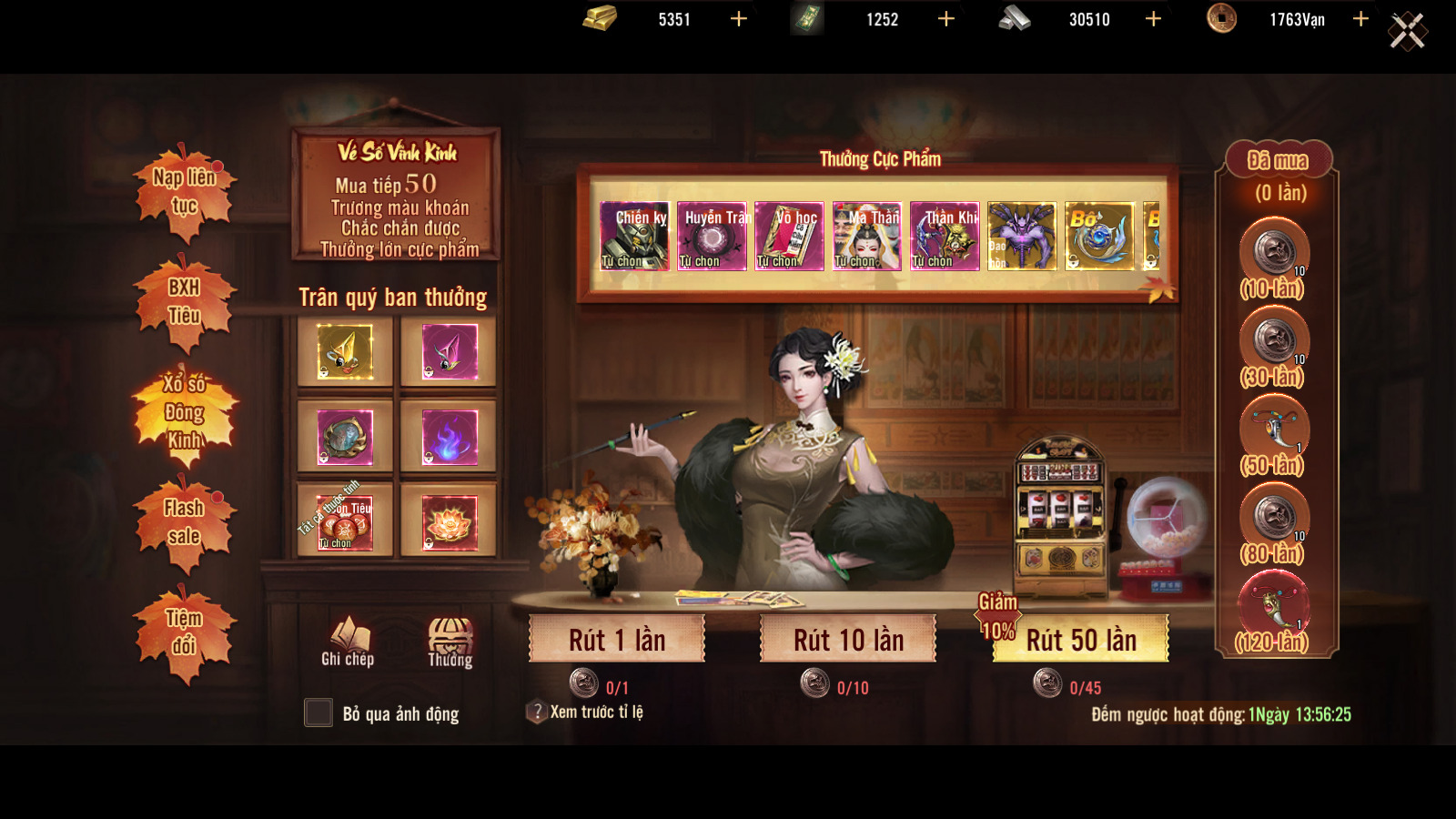 - Đại cát đại lợi (1350 vàng) (bắn 1 lần nhận 50 item)