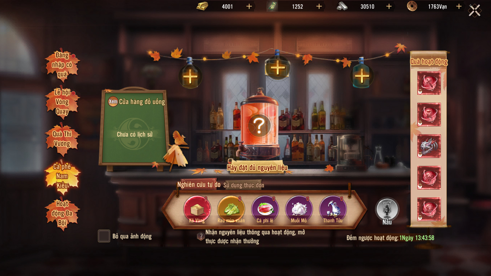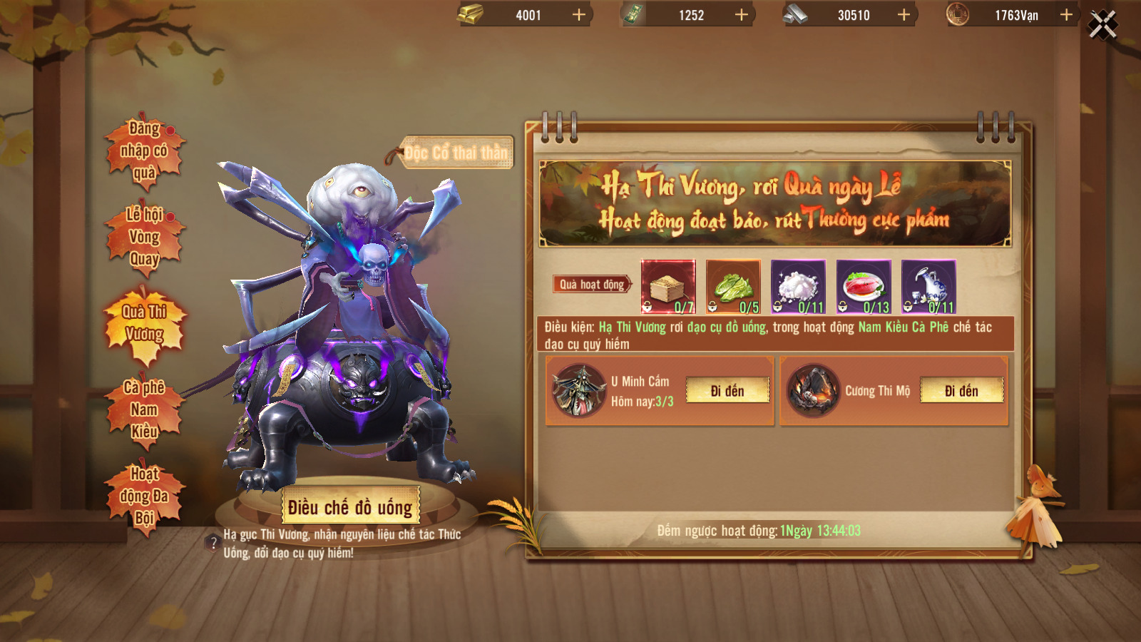 Đánh boss u minh cấm địa và cương thi mộ địa nhận quà vật phẩm để điều chế món trong hoạt động cà phê nam kiều