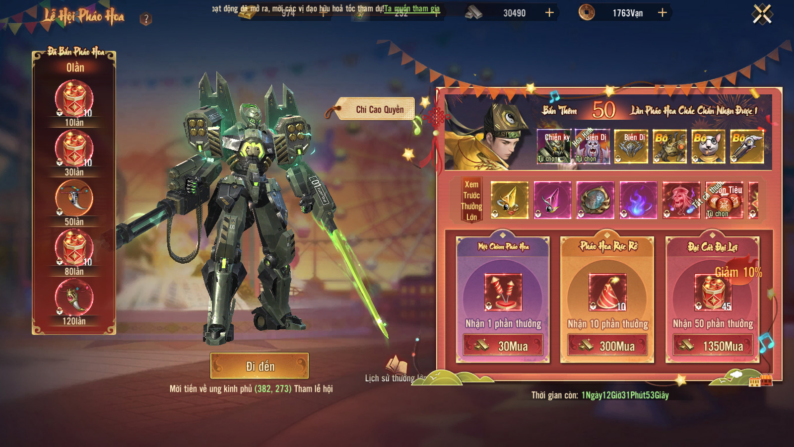 - Bắn pháo hoa 50 lần chắc chắn nhận thưởng lớn, nhận ngẫu nhiên 1 trong các vật phẩm sau: