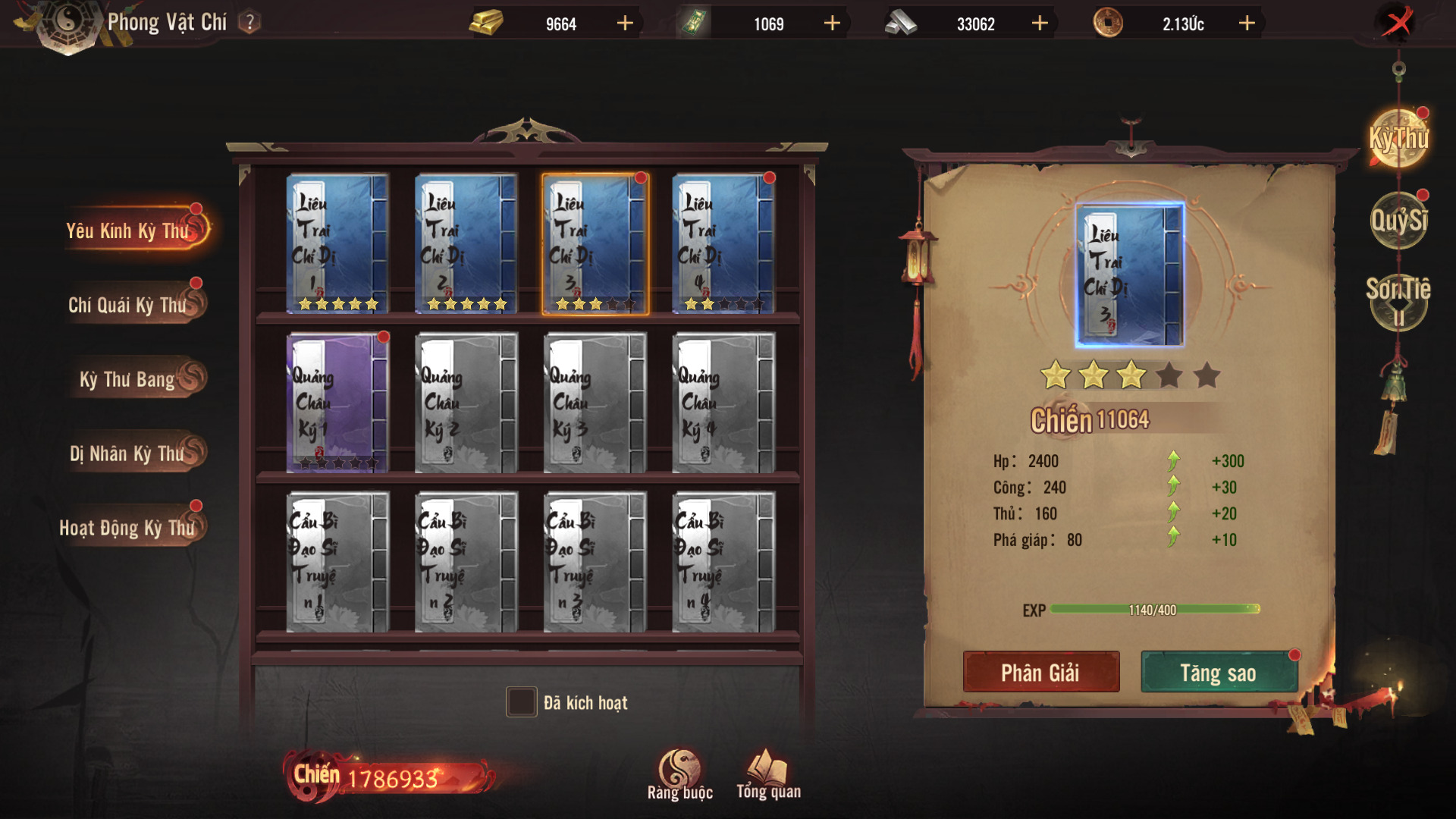 Sau khi kích hoạt, kỳ thư có thể tiêu hao EXP kỳ thư để tăng sao, EXP kỳ thư có thể nhận thông qua phân giải kỳ thư, kỳ thư phẩm khác nhau sẽ nhận được lượng EXP khác nhau. Thu Thập đủ tổ hợp kỳ thư có thể kích hoạt thêm thuộc tính ràng buộc.