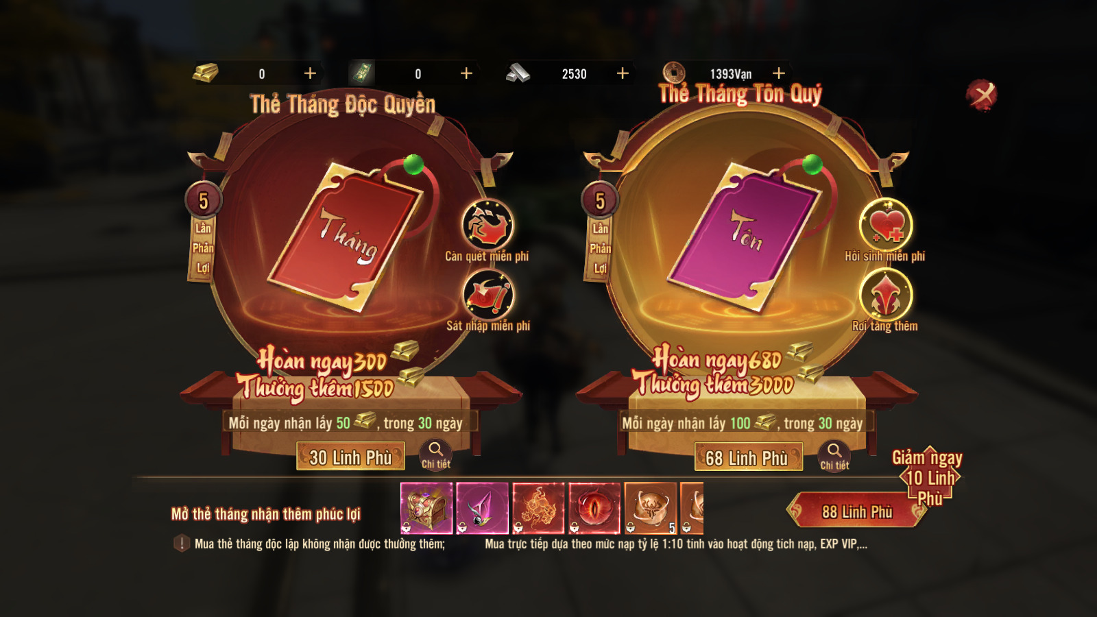 II. Mua combo Thẻ Tháng Độc Quyền & Thẻ Tháng Tôn Quý Giảm Ngay 10 Linh Phù
