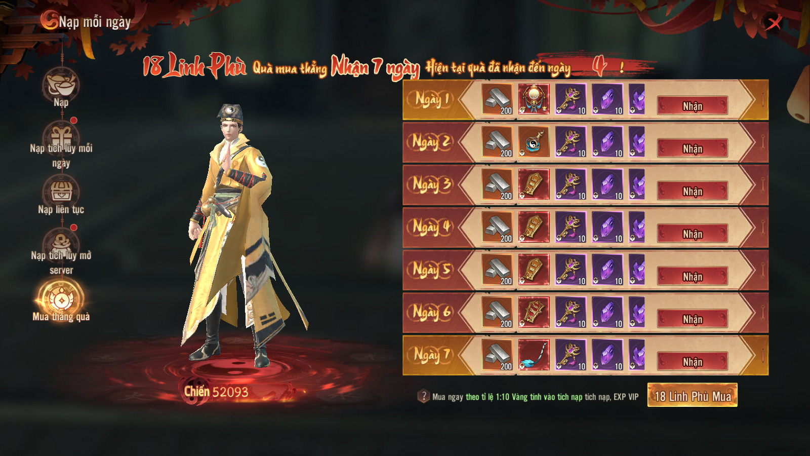 III. Tiêu 18 Linh Phù, mua thẳng quà nhận 7 ngày