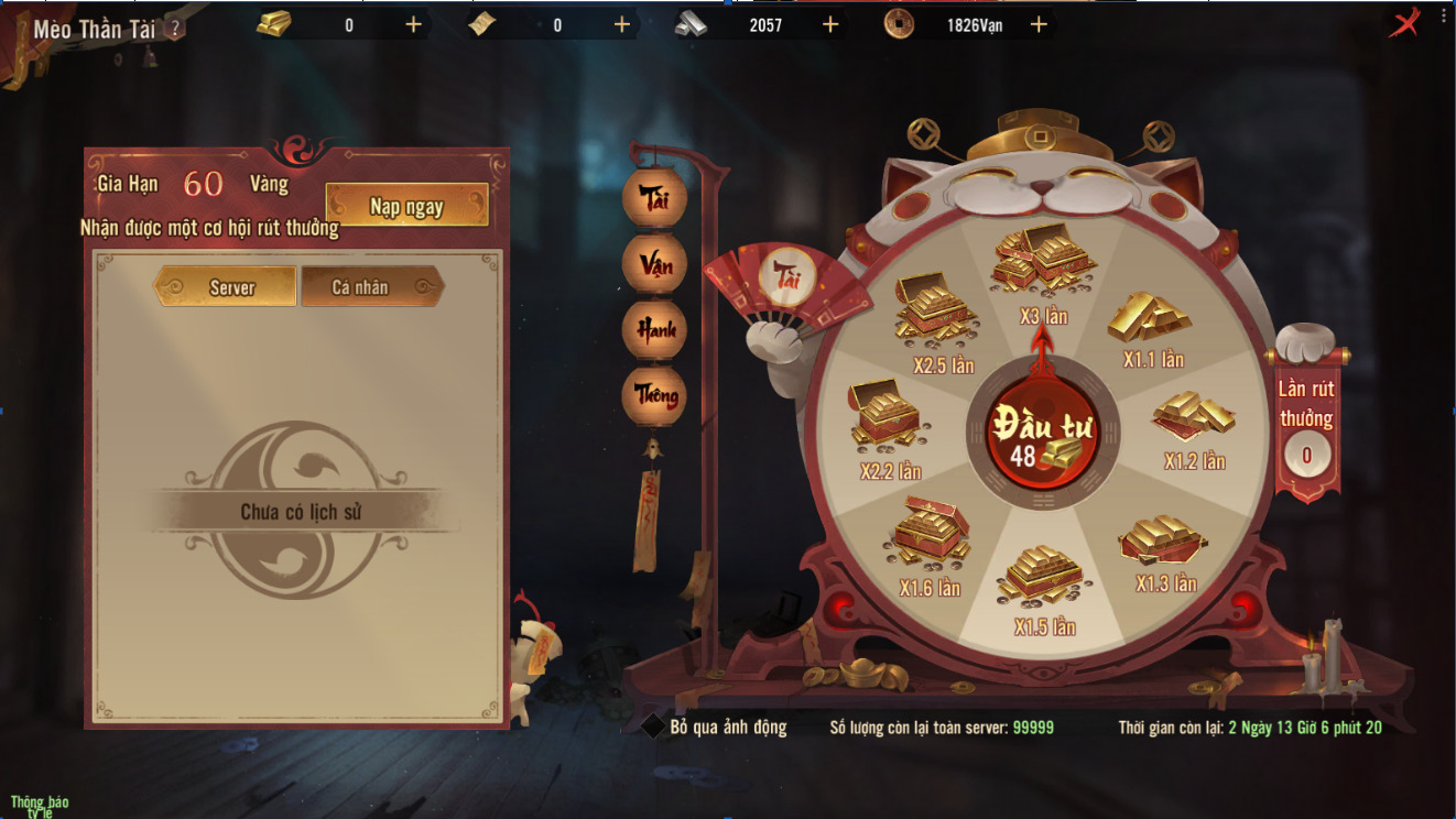 Nạp đạt mức yêu cầu nhận lượt Quay mèo thần tài