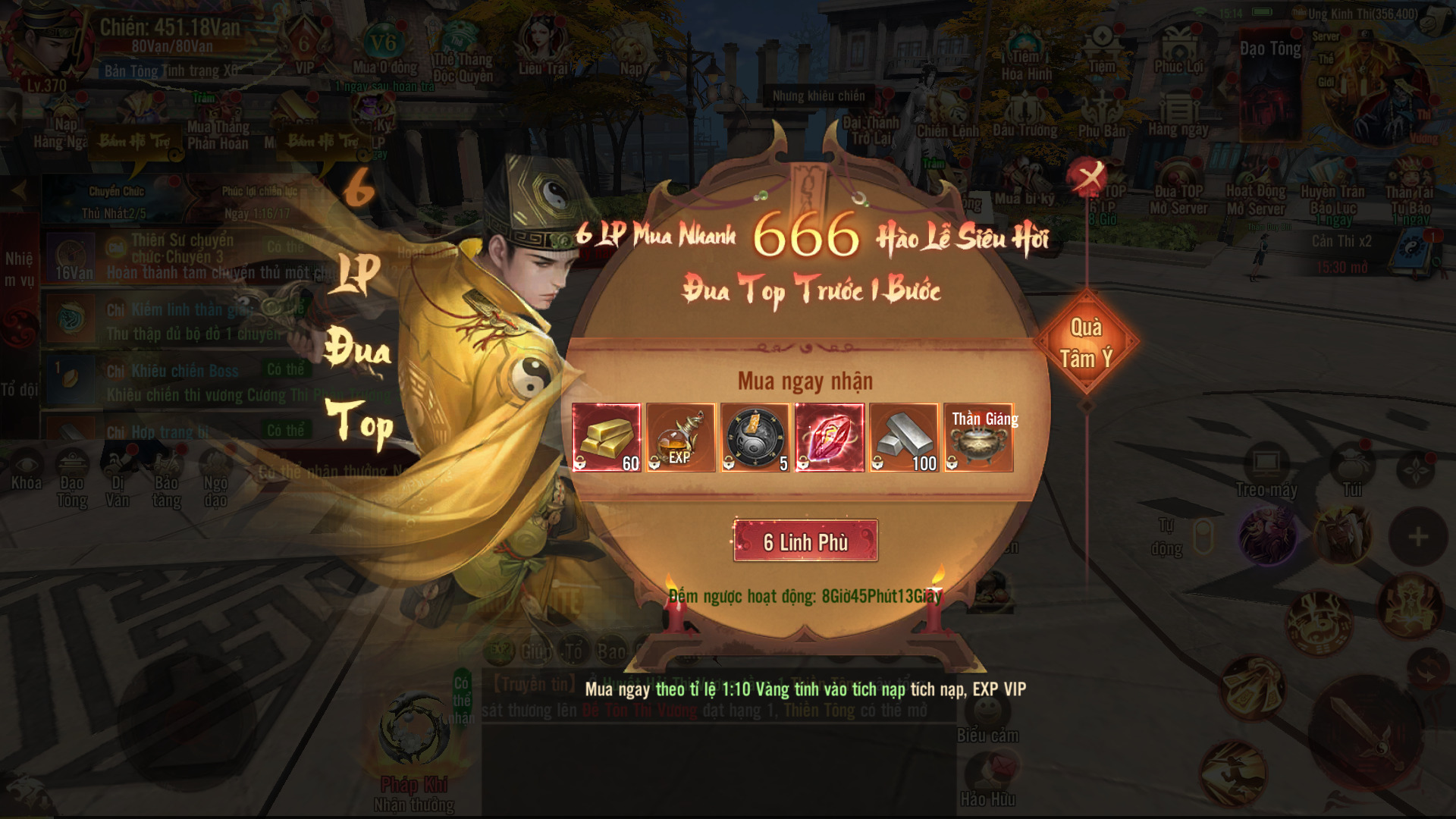 Trấn Linh phù: 24h. 288 vàng mua gói và hoàn trả vàng